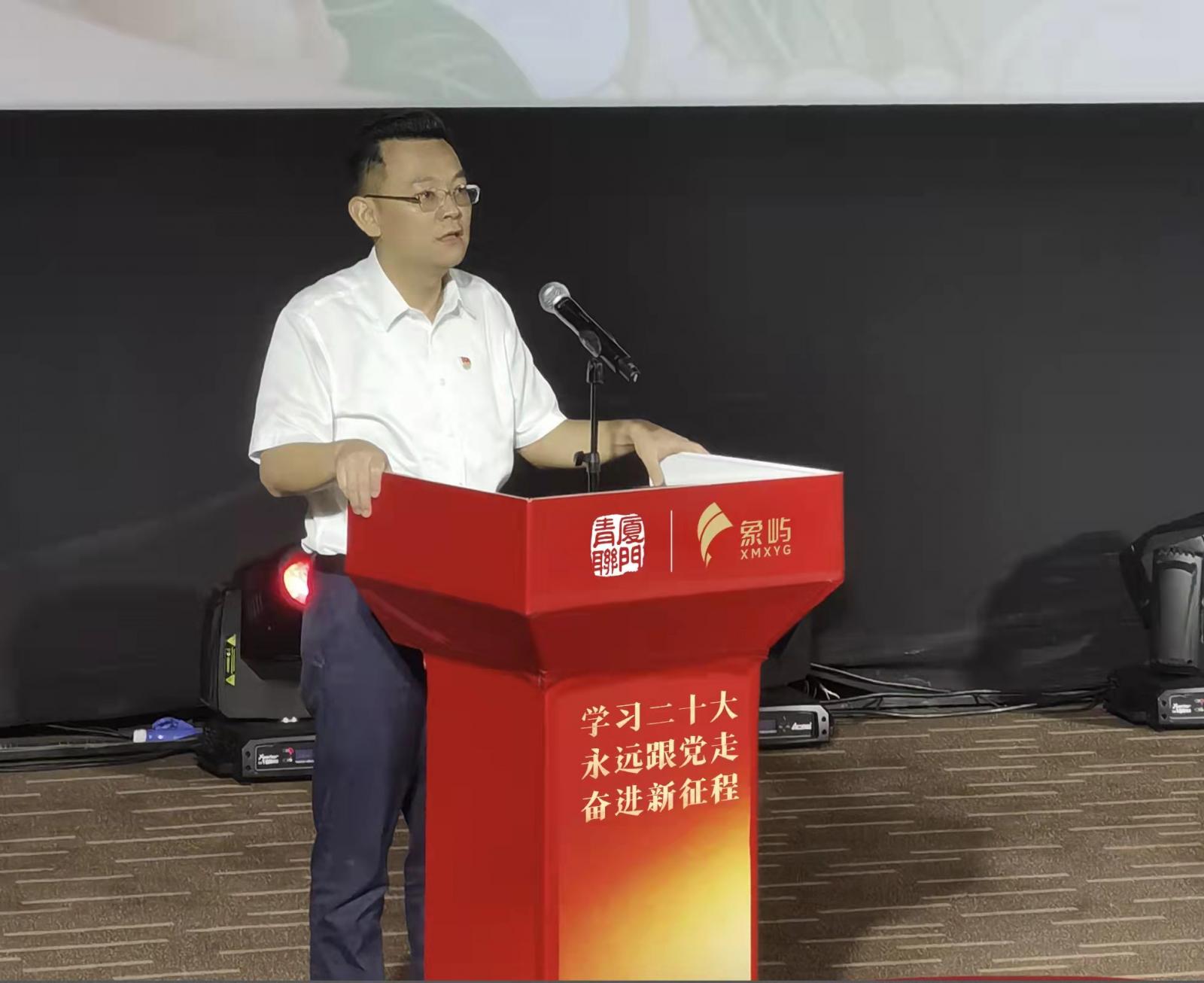近日,由廈門(mén)市青年聯(lián)合會(huì)、象嶼集團(tuán)主辦,廈門(mén)市國(guó)資團(tuán)工委、市青年社會(huì)組織聯(lián)合黨支部、象嶼集團(tuán)團(tuán)委承辦的“學(xué)習(xí)二十大 永遠(yuǎn)跟黨走 奮進(jìn)新征程”各界青年學(xué)習(xí)黨的二十大精神分享會(huì)暨《讓這首歌作證》紅色觀影活動(dòng),在象嶼集團(tuán)愛(ài)國(guó)主義影視廳舉行。