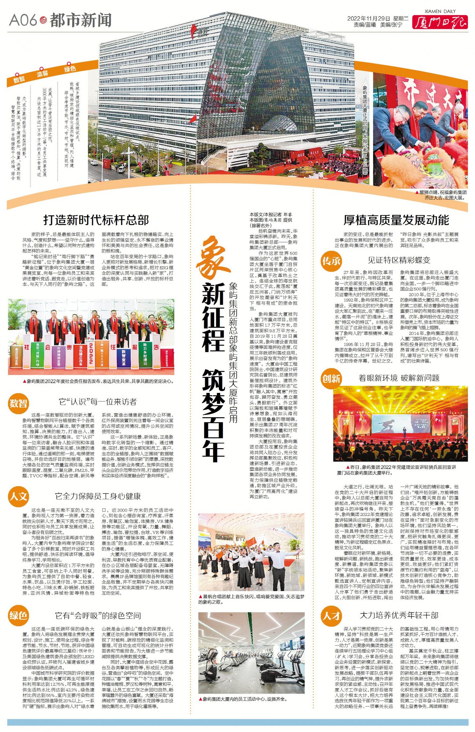 【廈門日報】象新征程 筑夢百年 象嶼集團新總部象嶼集團大廈昨啟用