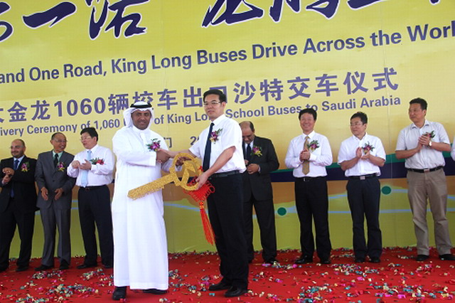 6月18日上午,“大金龍”1060輛校車出口沙特交車儀式在福建廈門現(xiàn)代碼頭舉行。此系今年以來中國客車出口第一大單。廈門市副市長林銳向大金龍沙特用戶代表交付了金鑰匙。隨著1060輛校車啟程前往沙特為學(xué)子護(hù)航,福建沿海與阿拉伯海這條古老的海上絲綢之路,開啟了新時期貿(mào)易合作的大幕。