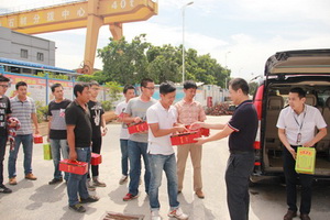 速傳物流工會(huì)為速傳總部、太平物流、勝獅貨柜的倉(cāng)庫(kù)、外勤等一線崗位的員工們送上遮陽(yáng)傘、水杯、風(fēng)扇、電飯鍋、綠豆、白糖、鹽汽水、毛巾、肥皂、花露水、清涼油、風(fēng)油精、龍虎人丹及藿香正氣水、防暑飲料等多樣化的慰問(wèn)品。象嶼港灣公司工會(huì)除了購(gòu)置飲品外,還結(jié)合員工戶外作業(yè)的實(shí)際需求,為一線員工們送去實(shí)用的雨衣套裝。天津立業(yè)向一線員工們發(fā)放了鹽汽水。上海閩興大發(fā)放了有機(jī)綠豆、大米和鹽汽水,以及為物流外勤人員發(fā)放了草帽及小型風(fēng)扇等慰問(wèn)品。