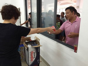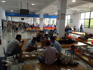 漁港停滿了來自兩岸的漁船,在工作人員的疏導(dǎo)下,漁民們也都上岸避風(fēng)了。上千漁民被安置在了漁港旁的避險中心,免費(fèi)的食品是這個臺風(fēng)天最溫暖的禮物。或就餐,或休息,由于處置得當(dāng),漁民們并沒有臺風(fēng)來臨的慌亂。有電視有空調(diào),漁民都說,也只有廈門的避險中心才有這么好的條件。
