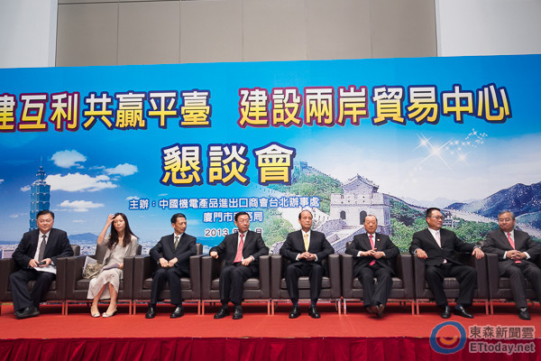 中國機(jī)電產(chǎn)品進(jìn)出口商會臺北辦事處、廈門市商務(wù)局6日下午于臺北舉辦“搭建互利共贏平臺建設(shè)兩岸貿(mào)易中心”懇談會,機(jī)電商會臺北辦事處主任李榮民(左四)、廈門市商務(wù)局副局長鄭耀(左二)、福建省貿(mào)促會會長張秋(左三)、廈門象嶼集團(tuán)董事長王龍雛(左一)等官方、企業(yè)界均親自與會,臺灣方面商總理事長張平沼(右三)、臺北市商業(yè)會理事長王令麟(右二)、臺北市進(jìn)出口公會理事長黃呈琮(右一)等工商企業(yè)領(lǐng)袖應(yīng)邀出席,海基會董事長林中森(右四)也特別到場。(圖/記者徐文彬攝)