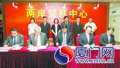 如果說廈門當(dāng)前面臨難得的歷史性發(fā)展機(jī)遇是“天時(shí)”,廈門與臺灣的“五緣”優(yōu)勢是“地利”,那么,強(qiáng)化責(zé)任、狠抓落實(shí)、創(chuàng)造性地開展工作就是“人和”。為了進(jìn)一步深化兩岸貿(mào)易中心平臺服務(wù)功能,提升兩岸貿(mào)易便利化水平,強(qiáng)化廈門作為對臺窗口城市的戰(zhàn)略地位,昨日上午,在市委市政府的統(tǒng)一部署下,市商務(wù)局、象嶼保稅區(qū)管委會等部門的共同推動下,廈門市象嶼集團(tuán)與臺灣地區(qū)的“物流一條龍”——吉時(shí)國際航運(yùn)股份有限公司、關(guān)貿(mào)網(wǎng)路股份有限公司、新竹物流股份有限公司、臺北港貨柜碼頭有限公司共同簽訂戰(zhàn)略合作框架兩岸貿(mào)易便利化及跨境電子商務(wù)合作協(xié)議。兩岸電子商務(wù)產(chǎn)業(yè)的合作之手,在兩岸貿(mào)易中心緊緊地握在了一起。