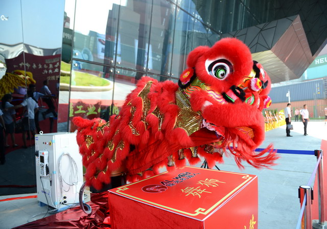 開儀式上的機(jī)器人舞獅表演十分吸睛