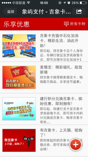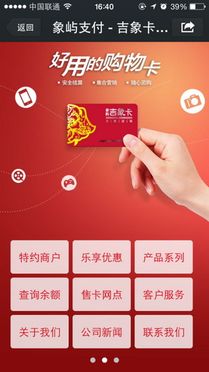 3、增加微信版網(wǎng)站,與吉象卡官網(wǎng)內(nèi)容同步更新,吉象卡特約商戶、最新樂享優(yōu)惠信息盡在掌中。