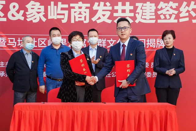 ▲馬垅社區(qū)黨總支和象嶼商業(yè)發(fā)展聯(lián)合黨支部在廈門嶼果公寓簽約共建