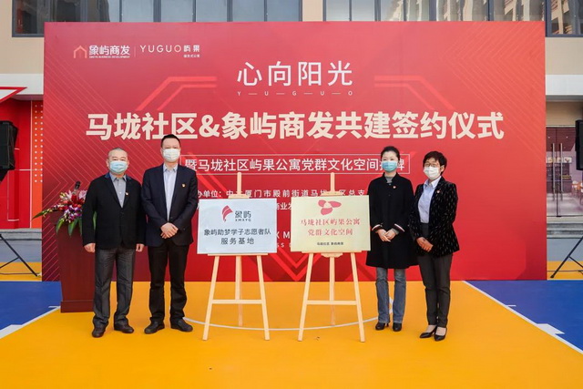 近日,廈門市湖里區(qū)殿前街道馬垅社區(qū)黨總支和象嶼商業(yè)發(fā)展聯(lián)合黨支部在廈門嶼果公寓簽約共建。殿前街道黨工委書記顏莉莉,象嶼集團黨委副書記邵蕰默,殿前街道黨工委委員、二級調(diào)研員邱忠民出席儀式,并為馬垅社區(qū)嶼果公寓黨群文化空間揭牌。