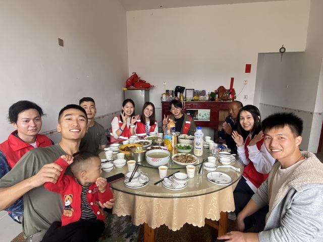 最后,五支隊(duì)伍分別前往村中五戶空巢老人家中,聊家常、做家務(wù),還精心烹制了滿滿一桌團(tuán)圓飯。志愿者們與老人們就像家人一樣,其樂(lè)融融地圍坐在餐桌前。撲鼻飄香的飯菜、灑滿屋內(nèi)屋外的歡笑聲與祝福聲,溫暖了每個(gè)人的心。
