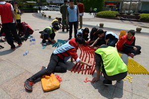 為幫助競選者更好地樹立無邊界組織思維,本次拓展一改常規,分組成員不再固定,每一環節都作動態調整,每位競選者需要不斷尋找新合伙人、組建新團隊,并在這一過程中共度難關。“火線報到”以團隊協力奔跑的方式幫助競選者釋放自我、直入主題;“我是大富翁”讓競選者體悟到資源整合優化的重要性,建立起合作共贏的團隊意識;“步步高升”、“斗轉星移”、“左右開動”不僅勞其筋骨,更苦其心志,考驗著每位競選者的抗壓能力、分工協作以及風險意識;“七巧板”因小失大的全軍覆沒,則讓競選者們集體沉默,開始學著跳出個人利益優先的思維局限,重新思考個體在團隊中的角色定位,并更深地理解“共贏”、“利益最大化”等詞匯的內涵。歷經艱苦的身心洗禮,競選者們在收官項目“多米諾骨牌”中空前凝聚,“天災人禍”只會讓他們愈挫愈勇,烈日下神經的緊繃、匍匐的姿態和接續的汗水只為贏得最后勝利。從各式象嶼文化創意造型,到最后集體創作的多彩象嶼集團標識,青年象嶼人通過骨牌表達著對集團的熱愛,他們對象嶼夢的向往與追求也從中展露無遺,正如他們在即興晚會上的所歌所舞所演,青春激情、夢想綻放,就在你我身上。