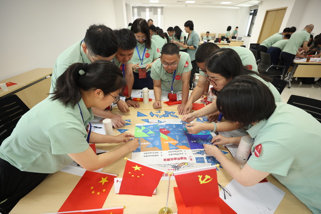培訓(xùn)中,基層黨建工作的一道道“必答題”被引入沙盤推演,帶領(lǐng)學(xué)員在沉浸式的劇情體驗(yàn)中,熟練掌握成立黨支部、過好組織生活、發(fā)展黨員、聯(lián)系群眾等知識技能,在劇情的推進(jìn)和重重任務(wù)的考驗(yàn)中,深刻領(lǐng)會到做好基層黨建工作的重要意義。學(xué)員們團(tuán)結(jié)互助、堅(jiān)持探索,深挖黨建工作的“通關(guān)秘鑰”,破解黨建與業(yè)務(wù)“兩張皮”的難點(diǎn)痛點(diǎn),點(diǎn)燃了基層黨建工作提質(zhì)增效的“星星之火”。