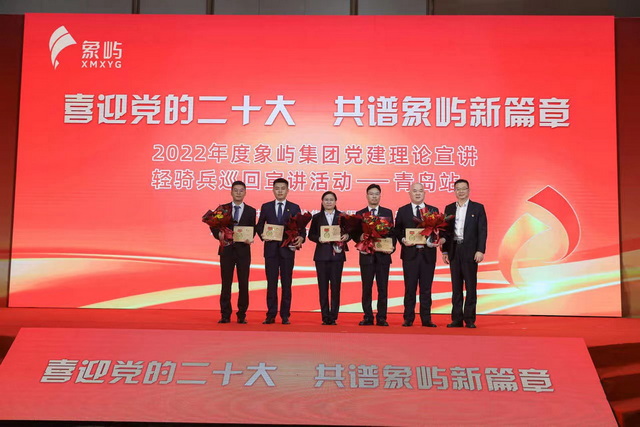 6月30日晚,“喜迎黨的二十大,共譜象嶼新篇章”象嶼集團(tuán)黨建理論宣講輕騎兵巡回宣講活動在青島舉行。象嶼集團(tuán)黨委副書記、總裁鄧啟東,黨委副書記、工會主席邵蕰默,副總裁林志勇及200余名周邊區(qū)域公司員工代表現(xiàn)場聆聽,全球各地象嶼員工也以觀看視頻直播的方式“云參與”。
